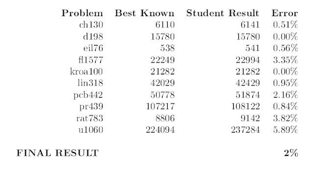 The TSP competition ended up in June, and I finished in third position. As you may have noticed in the results table, there is a couple of problem which where hard to lower, especially the u1060.